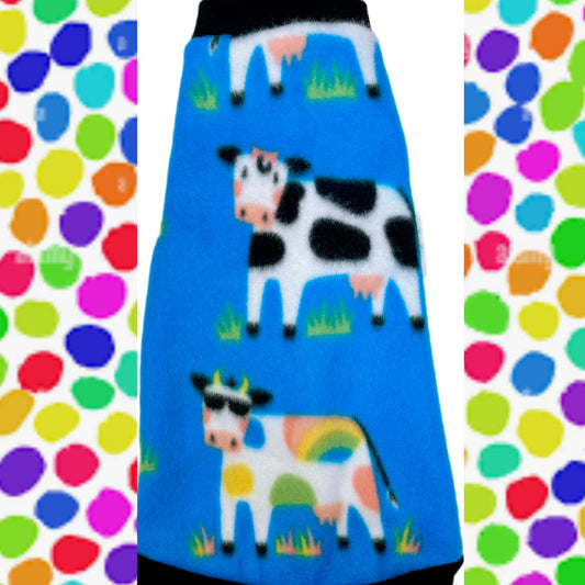 Cows on Bright Blue Fleece, “Udderly Adorable”