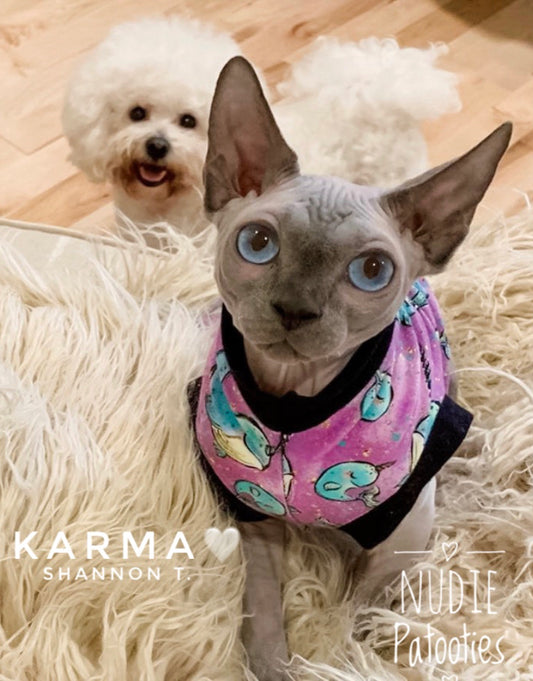 Upcycled & Altered Wonder Woman in Training Sphynx Cat Shirt