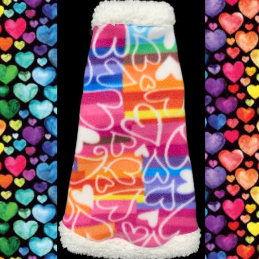 Hearts on Rainbow Fleece w/Sherpa "Be a Rainbow"