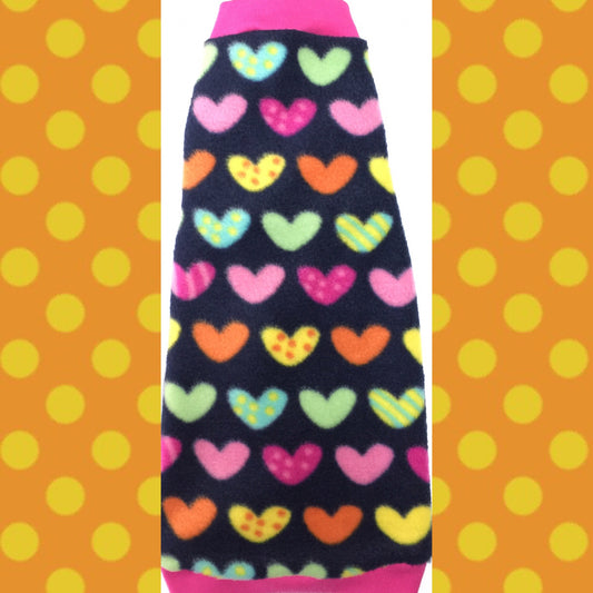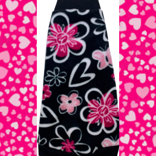 Hearts & Flowers on Black Fleece "Sweet-Tart"