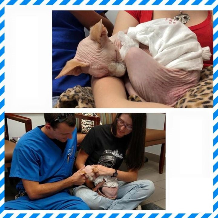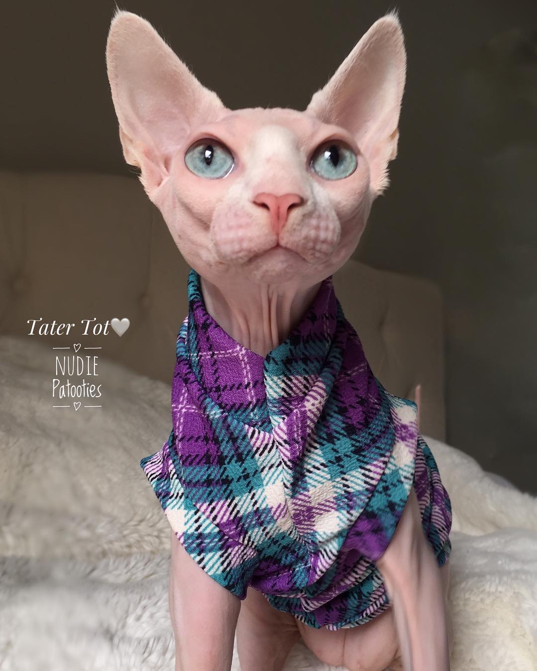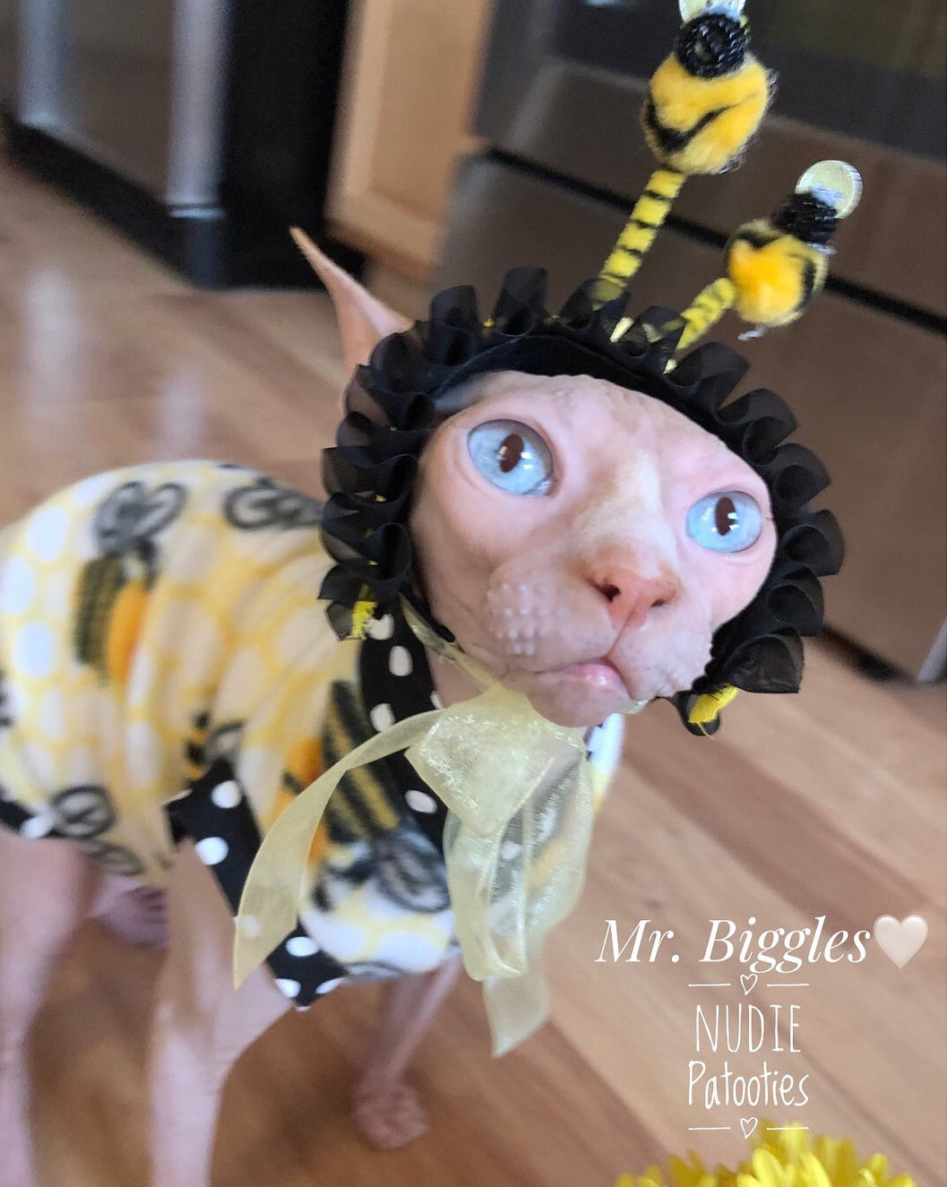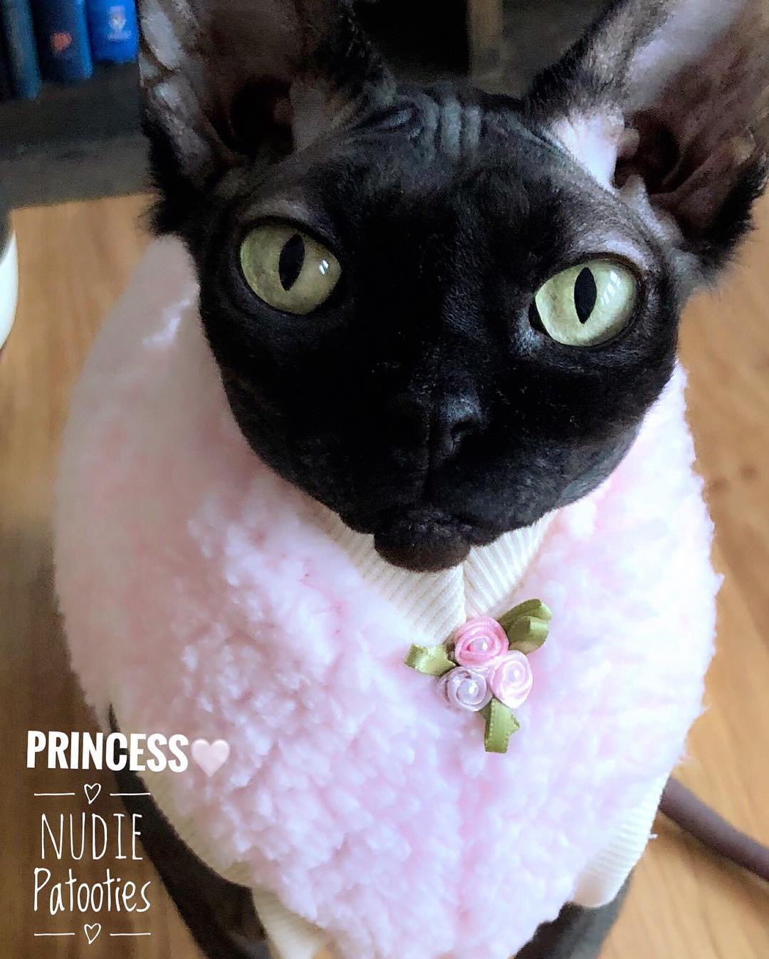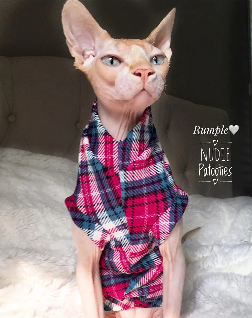 Beerus was recently adopted by a veterinary technician. Beerus needs lots of medical treatment. He has bruising all over his body, dry eyes, a possible malignancy, severe lethargy, diabetes, dehydration and other ailments. Sphynx Nudie Patootie was able to provide Beerus with a wardrobe as he recovers from his surgery. More about Beerus' journey can be found here: Save Beerus