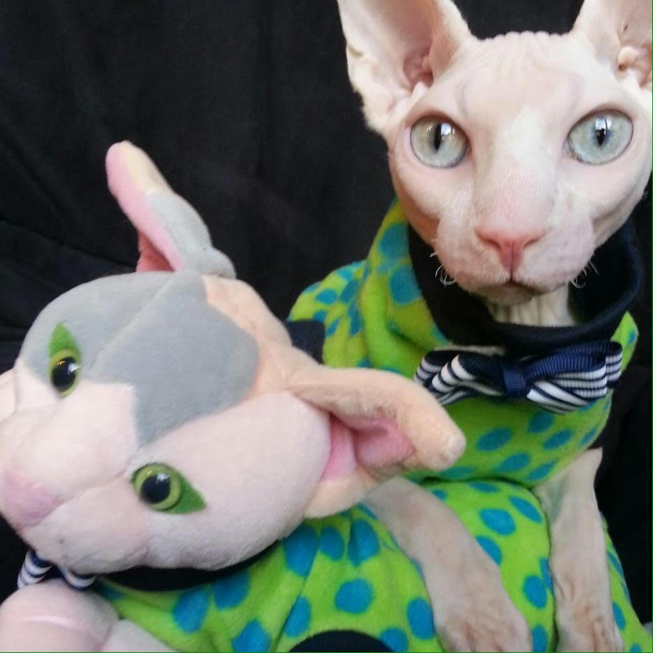 Chase, who is an adorable seven year old little boy who was recently diagnosed with Acute Myeloid Leukemia. He will be spending a few months with the folks at Children's Hospital in Denver. Chase happens to LOVE hairless cats! With the help of the Sphynx Community, we were able to send Chase a photo book of over 250 of our friends on instagram and a Sphynx stuffed animal which of course wears Nudie Patootie clothes! It is not too late to share your sphynx with chase through his facebook page: Cats For Chase!