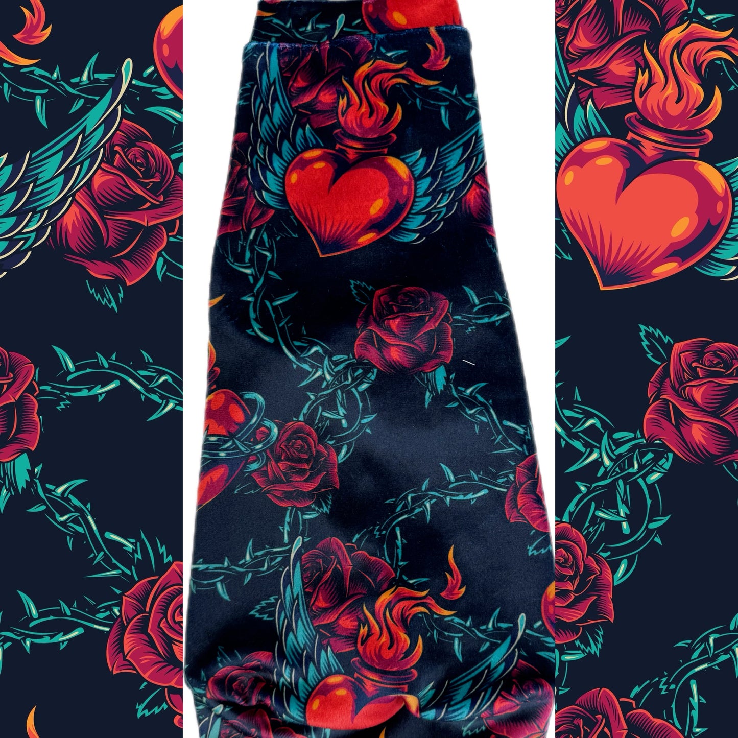Simply stunning and Addicted to Love. This is a super soft poly fabric that is a cross between minky, velvet and velour. It has quickly become a favorite fabric of many Nudie Patooties. This fabric is buttery soft and great for moderate weather. Not as warm as a fleece, but warmer than a t-shirt. Lots of stretch! .
