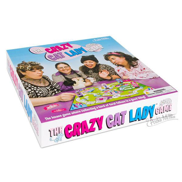 You can never have too many cats! Or can you? In this exciting board game you attempt to collect more cats than your fellow competitors as you make your way around the board. Gain more cats by landing on spaces like "Save a Cat Stuck in a Tree" and "Rescue Grumpy Old Cat From Pound." But watch out for spaces that take cats from you like "Beware of Dog" and "Kitten Distracted by Bit of Fluff." Fantastic feline fun for the whole family! Includes gameboard with spinner, four game pieces with plastic stands, fifty 5/8" tall plastic cats and four Wildcat cards. A great gift for cat lovers and the perfect substitute for actually acquiring an unhealthy number of real cats. Dressing up like a crazy cat lady while playing is optional, but encouraged.