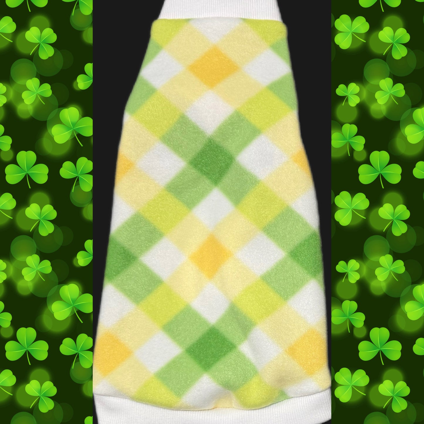 Your kitty will look so phresh in this spring plaid fleece with rib knit trim!