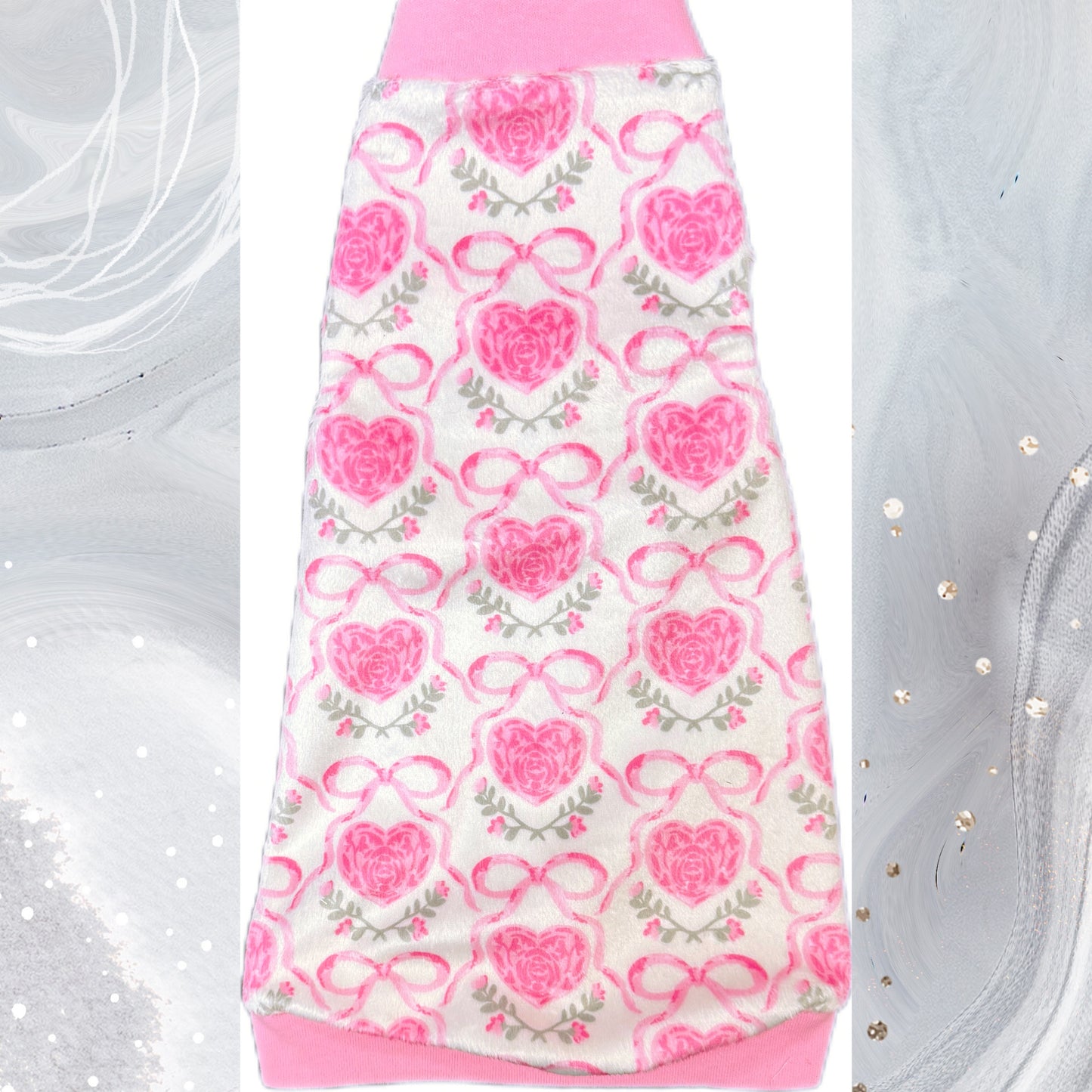 Minky is a polyester fabric that feels like a velvet! It is warm (Warmer than a cotton tshirt, but not as warm as fleece. The minky backing helps retain heat.) and VERY durable! We love this fabric because we have one sphynx that destroys her clothes with licking. Minky is about the only fabric that doesn’t pill or show signs of kitty abuse 😂. This is a low nap fabric that washes extremely well (wash inside out and hang to dry) and maintains it shape. You will notice seperation of fibers, particulary around the neck seam. This is normal and usually disappears as the fabric eases. This fabric has a nice stretch, but is not overly stretchy, so you may want to be at the low end in weight of your size when ordering! If you have questions, hit the chat button on our website and we will be happy to help you!