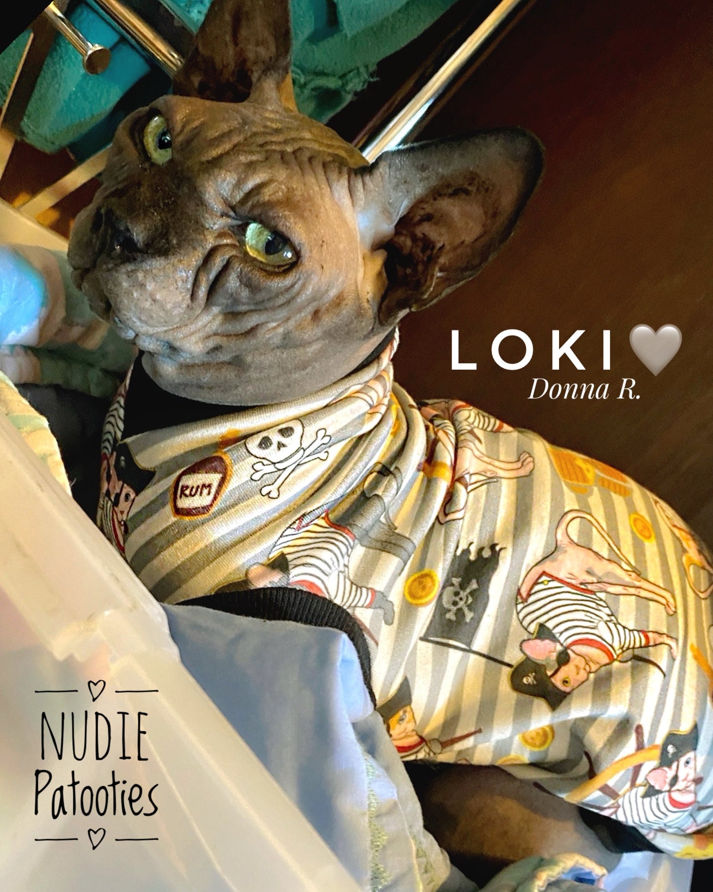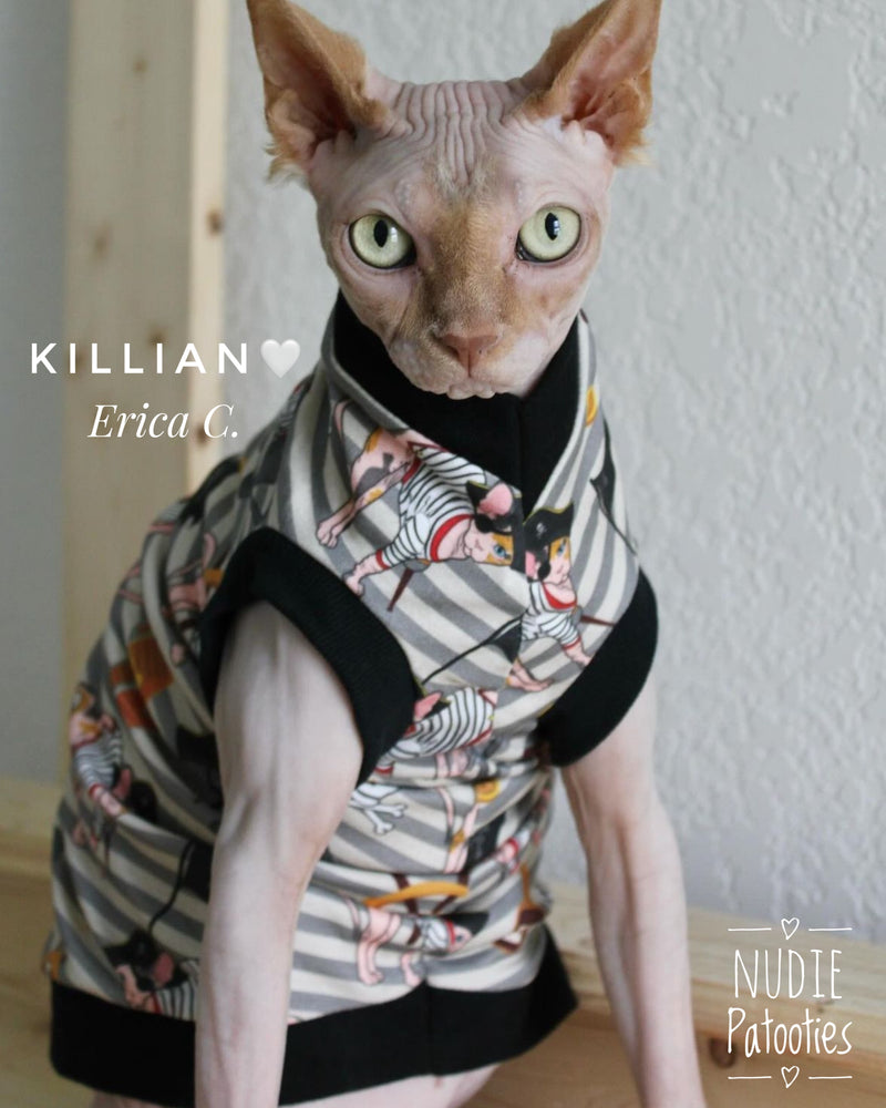 Nudie Patooties shirt for your sphynx cat, sphynx kitten, cornish rex, peterbald and devon rex cat. Sphynx cat clothes, shirts and sweaters.