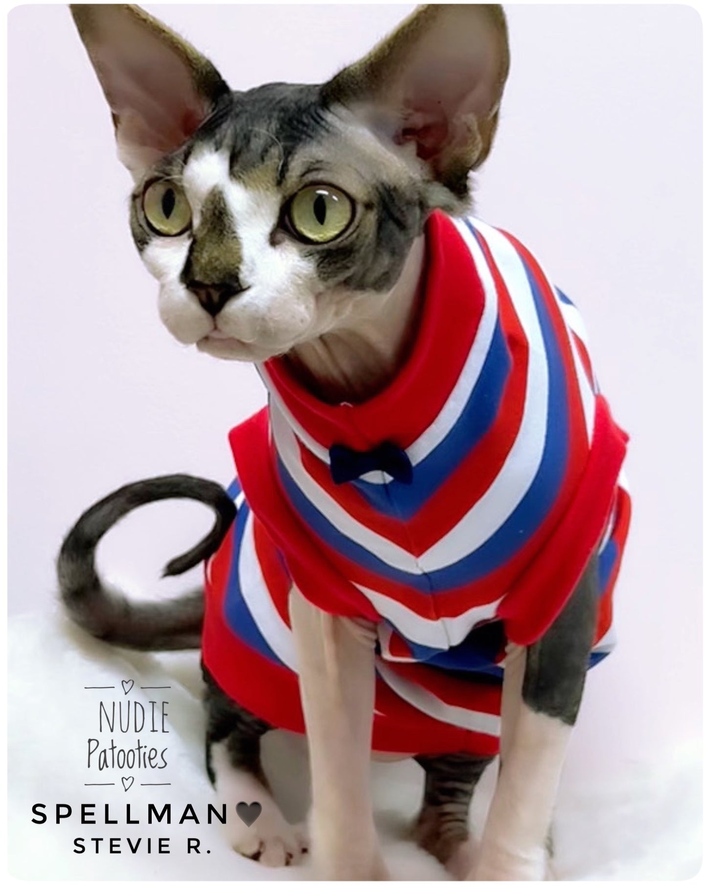 So Patriotic! This is a high quality cotton blend knit, specialty fabric. Wash inside out in cool to warm water and hang dry.